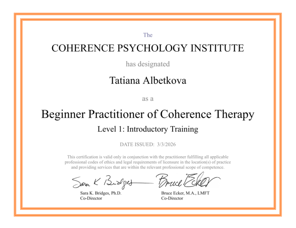 Я работаю в интегративном подходе – совмещаю знания и техники из разных направлений психотерапии в зависимости от вашего запроса